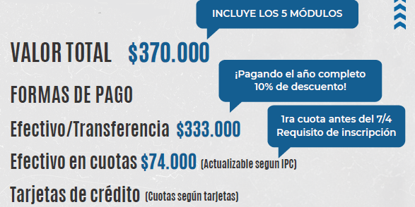 El alumno quedará formalmente inscripto con el pago de la primera cuota antes del 7/4.